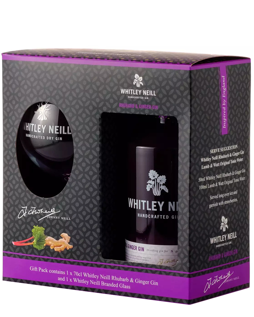 Whilst most of Johnny Neill's inspiration for his award-winning Gins comes from his ancestors intrepid exploits abroad, this Rhubarb & Ginger Gin harks from fond memories made slightly closer to home. Post-war, the Whitley Family, now settled into rural England near Daresbury, cultivated their garden with thrilling flavours, serving as inspiration for both the table and indeed their experimentation with new Gins. Johnny's' latest Gin evokes childhood memories of visiting his grandparents on their farm by taking a firm Whitley family favourite in rhubarb and placed a warm twist on this with the addition of fresh ginger. This giftset comes with a Whitley Neill gin glass.